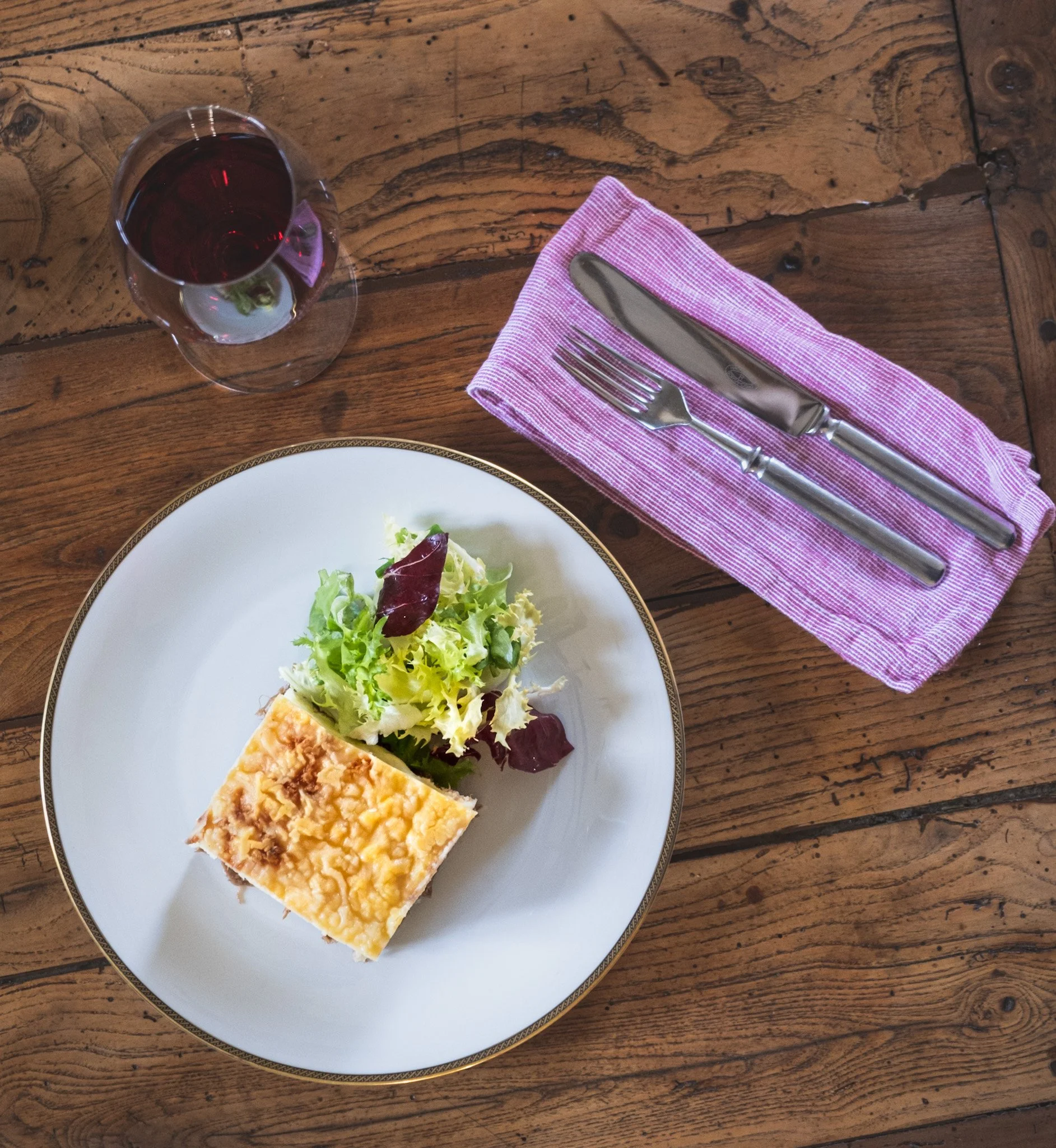 Heat the oven to 180 C. Grease a baking dish with duck fat. Place the meat mixture on the bottom and cover with mashed potatoes. Sprinkle the cheese on top and bake for about 25 minutes in the oven, or until the surface is nice and golden. Serve with green salad on the side.